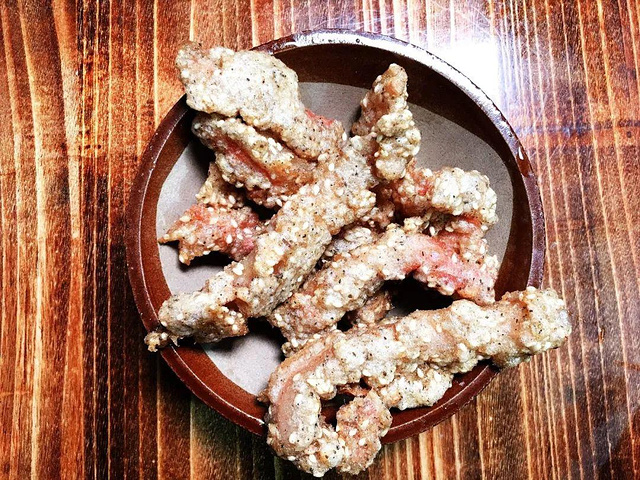 菜上得很快,最先端上来的现炸酥肉简直不要太香,三分肥七分瘦还加了芝麻,趁热吃起来酥酥脆脆根本停不下来。