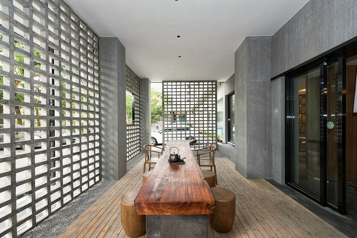 吃完早餐,我们就叫车到了酒店,入住的是华轩里酒店,这是在开会地点周边综合考虑选的一家酒店,价格中规中矩,酒店属于新中式的装修风格,酒店入口是花砖墙设计,有个木质长桌,很雅致,酒店大堂有个茶空间,壁柜上摆放着茶叶礼盒,询问得知这里会提供商务洽谈服务,在楼下大堂开个简短的茶会也是一个不错的选择。