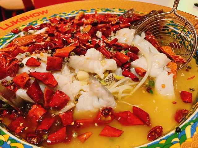 招牌酸菜鲈鱼真的超赞,汤底超辣但是会让里面的鱼肉特别鲜甜