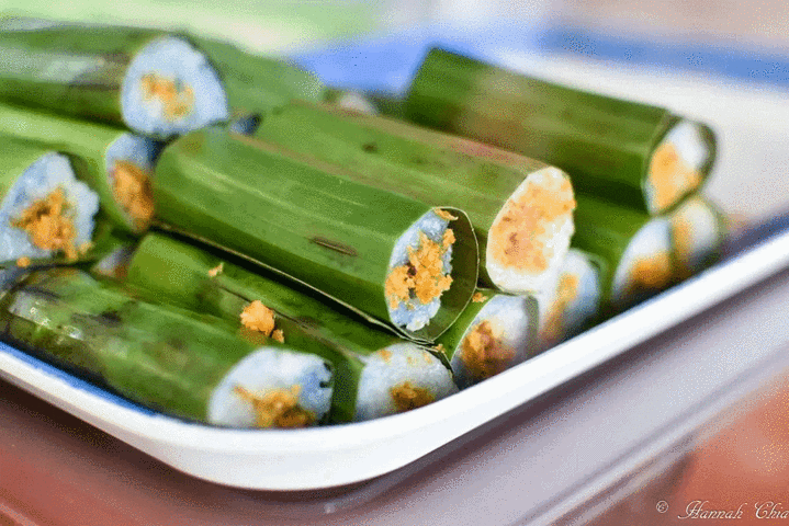 用香蕉包的蝴蝶豌豆花糯米饭,加上香香的小虾米馅,是很多人的挚爱,制作的工序不少,也是值得一试哦~