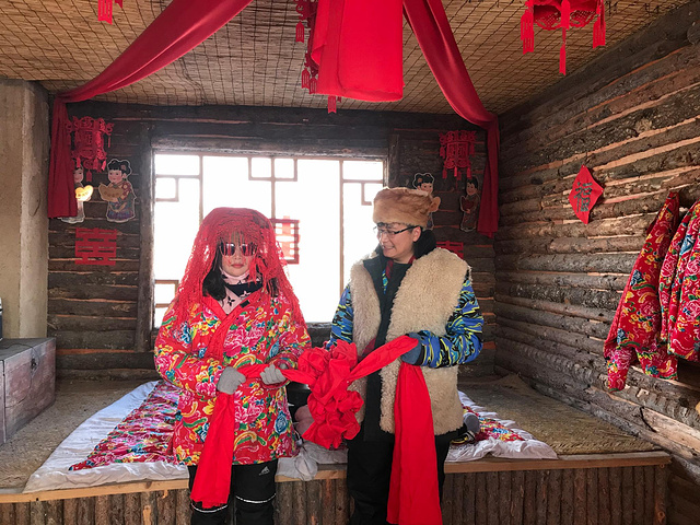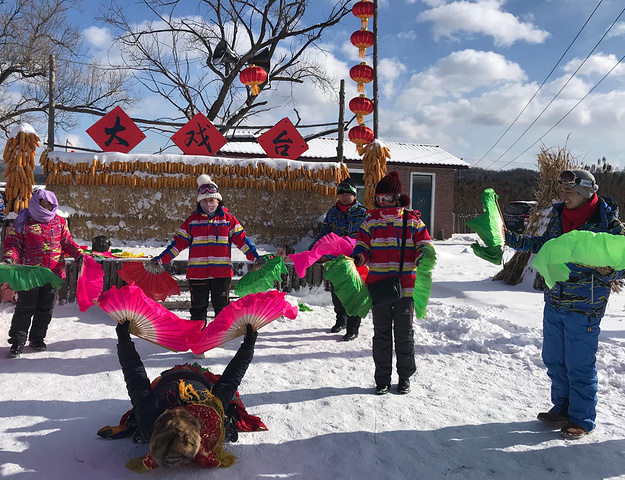 以下就是加了钱的情景体验项目啦,坐着马拉雪犁去黑风寨,然后再去农村看扭秧歌。觉得一般般就没拍啥照,放几张同行的团友照片