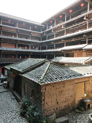 和贵楼~最高的土楼,至今已有500多年了,令人称奇的是,这座土楼建造在沼泽地上却没有桩基,就好比一艘大船漂浮在海上,虽然经历了200多年仍旧巍然屹立,被称为陆地上的诺亚方舟。