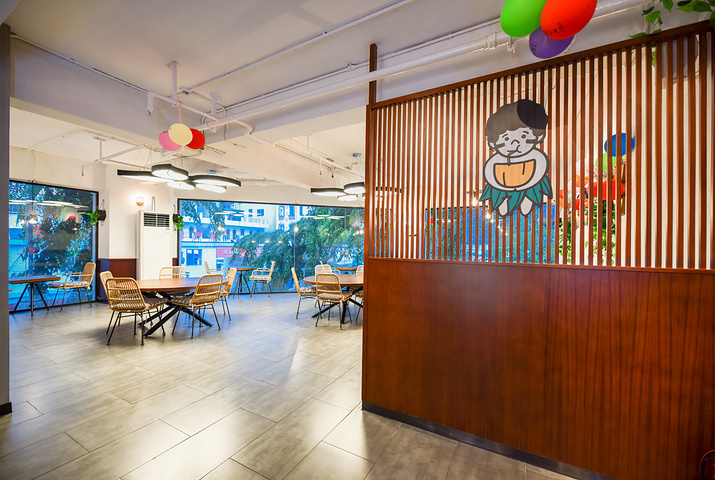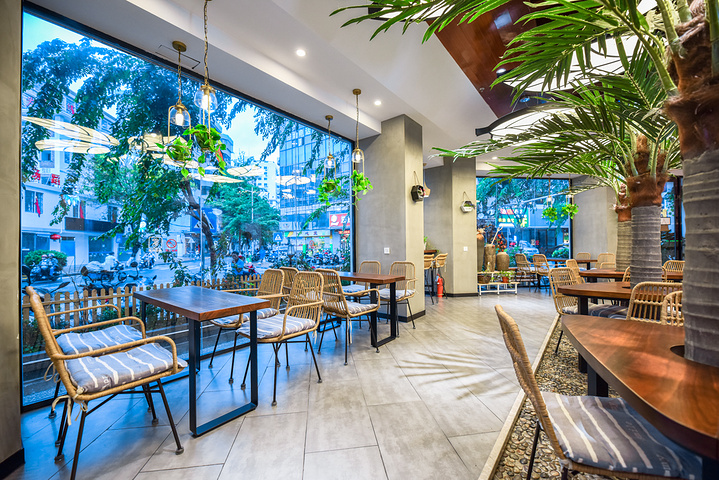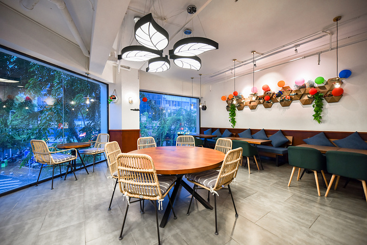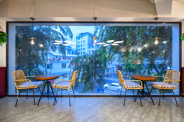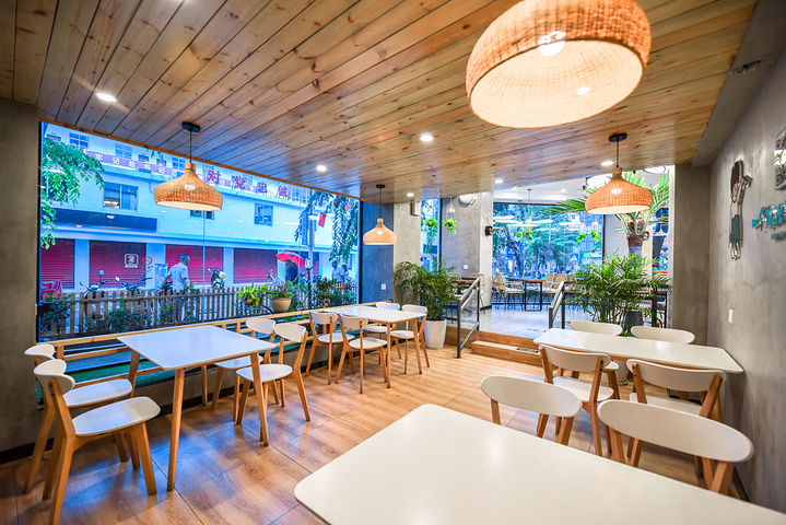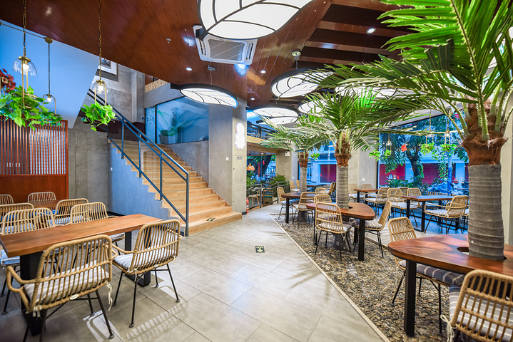 5.拍照点,门口椰林小院、室内靠窗边、一楼原木空间