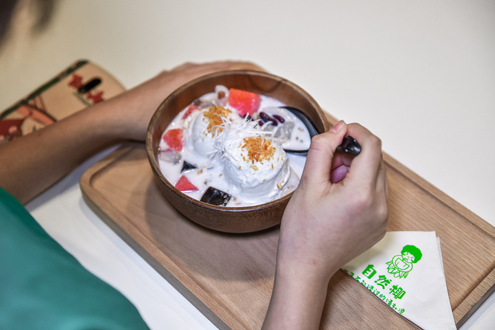 与街边小巷十块钱一塑料碗、趴在小方桌上吃不同,在这简约设计、光线柔和、空间感舒适的环境下,更多是品味一种甜品文化。和很多五星级酒店所谓的下午茶相比,自然椰才是最具三亚特色的下午茶;如果你也来,那么必点——纯正海南“下午茶”套餐--冰激凌清补凉(纯椰奶清补凉)、双皮奶、椰子糖、肠粉芒果;人均43元。冰激凌球个大、爽口过瘾;椰奶醇厚浓郁,和牛奶一样;双皮奶嫩滑细腻;椰子糖椰香回味,肠粉芒果很好吃。整体口感润滑、清爽,自然甘甜,老少皆宜。