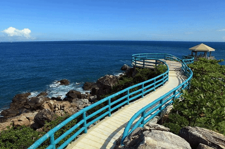 西岛又名玳瑁岛,是潜水的极佳区域,除此之外还有惊险刺激的水上娱乐项目。岛上岛——牛王岭,是看海的好地方。西岛不仅仅是供游客游玩的岛屿,这是唯一一个岛上有原住民的岛屿,可以感受当地的风土人情。