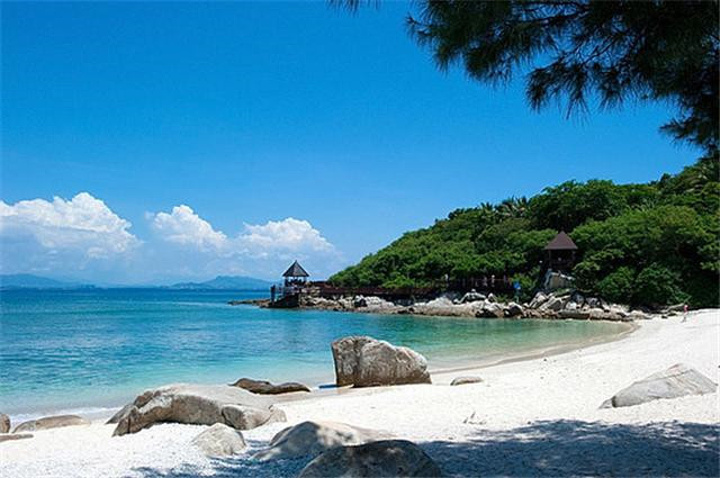 蜈支洲岛是一座非常漂亮的小岛,位于三亚北部的海棠湾内,左邻亚龙湾,右靠南湾猴岛,距海岸线仅2.7公里,位置优越,交通便利。岛形呈不规则的蝴蝶状,又象一颗巨大的宝石点缀于大海中央,小岛只有不到两平方公里的面积,却浓缩了三亚海岸风景的所有精华,每一处角落都释放出万种风情。洁白的沙,蓝蓝的海,不夸张地说,三亚风景最美的海滩就在这里,更让人惊喜的是,蜈支洲岛避开了台风走廊,岛上生长的不似其它岛屿的灌木,而是遮天蔽日的热带森林,百鸟聚集,很是适合休闲度假。