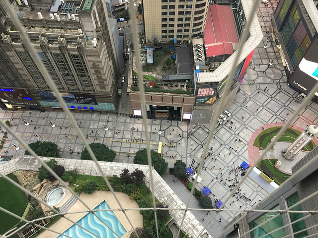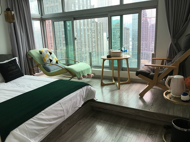 住宿:艺术云尚酒店公寓,接待的两位小姐姐好客热情,还给我们送了特产小礼物,跟我们介绍了很多好玩的景点,附近的美食推荐,最后把我们带到了入住的35楼,嗯,景色不错,俯瞰解放碑商圈,人民解放碑就在楼下!