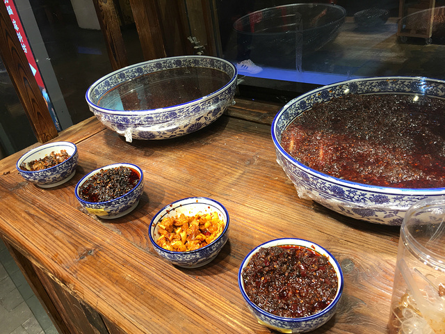出门觅食,原来附近有好多“好吃街”,我们选择了 重庆 小面。随便进一家,点了有辣有不辣的,分量真的很足,还未适应多油和辣的我们,腻了一天,连有“面霸”之称的JoJo在接下来再看到满街的面店时都说怕怕 (4碗共 101元)(后来听当地人说,如果吃不了那么多,有些是可以跟服务员说要2两面就够;服务员还告诉我们,云吞在这里叫“包面”)