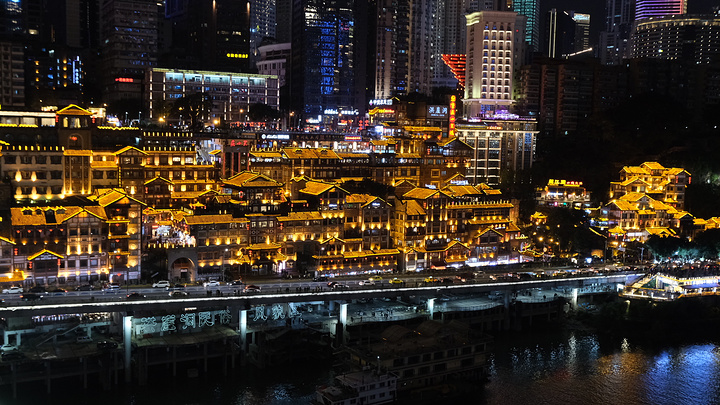 听说在千厮门大桥能看到洪崖洞全貌,但洪崖洞11点就会关灯了,所以我们都努力地往千厮门大桥方位奔去!