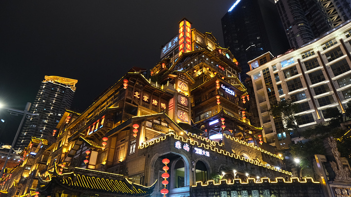 钟书阁出来,时间不早,我们抓紧时间奔往轻轨站(与涂鸦街反方向直走,再转左),沿路注意路牌指示,在杨家坪站上车(2号线),到临 江门 站下车,在解放碑按指示牌指引走往洪崖洞。