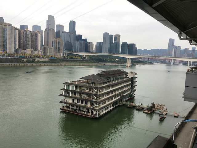 可怕的事情要来了 ,我们以为去到江边就能上桥,所以自作聪明跑到了一楼,但问了好心人才知道,千厮门大桥是在洪崖洞11楼那层的地面(另一个空间的地面,跟解放碑同一地面)。果然,在 重庆 山城,你以为自己在地面,却可能是身处别人家楼顶啊!