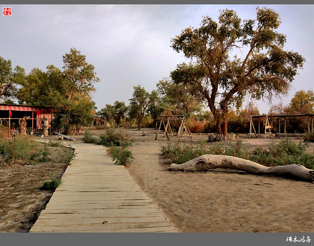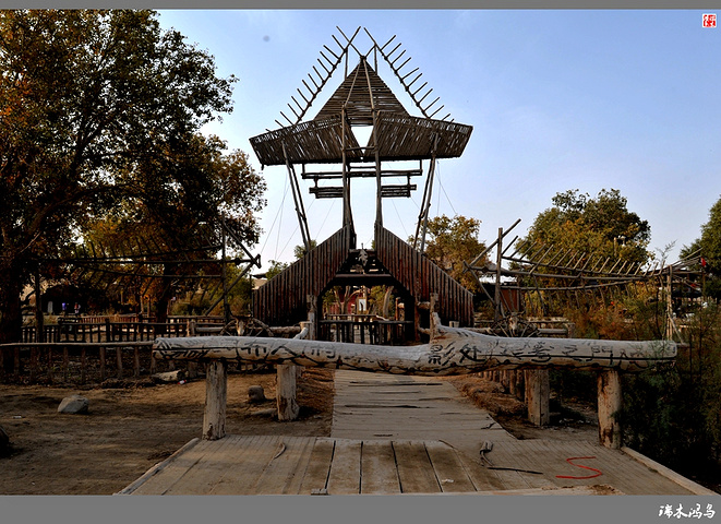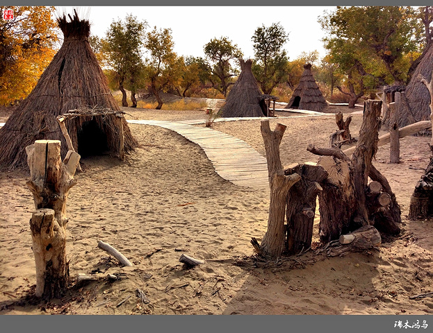 罗布人村寨位于新疆塔里木盆地东北边缘,巴音郭楞蒙古自治州尉犁县墩阔坦乡的塔里木河河畔。这里有千姿百态的原始胡杨林,塔里木河与渭干河在这里交相辉映,塔克拉玛干大沙漠一望无际。划独木舟、食烤鱼、讲罗布泊方言的罗布民族就生长在这里。罗布人是新疆最古老的民族之一,他们生活在塔里木河畔的小海子边,“不种五谷,不牧牲畜,唯以小舟捕鱼为食。阿不旦,在罗布方言里,是“水草丰美,适宜人居”的意思。对于罗布人来说,阿不旦是他们童年的摇篮、中年的竞技场和老年的归宿,是他们世世代代赖以生存的地方。这里有沙漠、湖泊、河流、草原,还有原始胡杨林。沙漠与最长的内陆河、最大的绿色走廊和丝绸之路在这里交汇,造就了一处世外桃源般的风景。罗布人的毡帽很有特点,上狭下宽,帽檐展开可抵烈日,帽檐放下可御严寒,用草药浸泡,还可按摸穴位。因其多种用途及独特的功效,被人们称之为长寿帽。”罗布方言是新疆三大方言之一,其民俗、民歌、故事都具有独特的艺术价值。罗布人村寨景区以罗布文化为灵魂,以生态建设为基础,以综合资源开发为目标,以民俗文化、探险旅游为特色,是一个集沙漠、胡杨、河流、湖泊于一体,自然景色各异,生态环境优美的旅游区。罗布人村寨景区分为八大功能区:一是罗布人民俗文化区;二是沙漠旅游探险区;三是“神女湖”旅游区;四是沙雕艺术园;五是沙漠植物园;六是野生动物园;七是丝绸之路民族园;八是塔里木河探险旅游区。