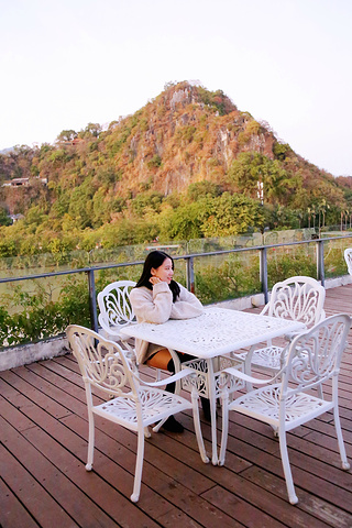 如果想户外下午茶也是可以的,3楼的露台,大自然为它装饰,蓝天青峰,搭配木质地板和白色桌椅,妥妥的空中花园。