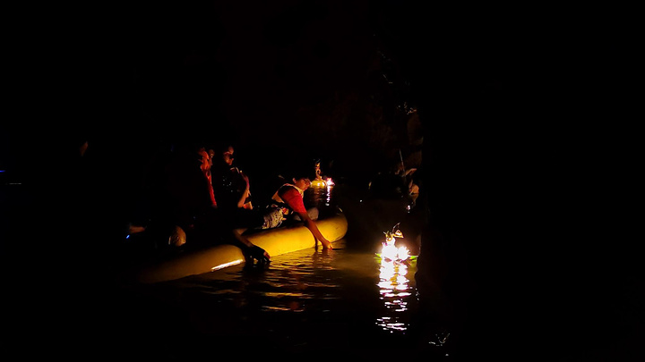水里发光的浮游生物,顶上密密麻麻的蝙蝠,还有洞连洞连洞的洞,加上幽幽的头顶探照灯,这可太像盗墓笔记了!