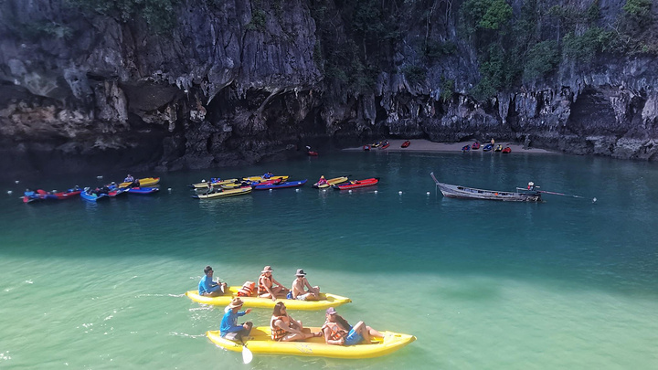 这一天的安排是早上换酒店,11点左右跟随旅行团前往攀牙湾,开始我们的“攀牙湾星光之旅”行程。包括浏览洞穴、划皮划艇、做水灯、欣赏发光浮游生物等。今天的交通工具是是一艘普通的观光船,不过通风性很好,完全不用担心晕船。