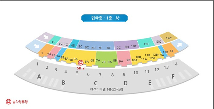 乘车点:仁川机场1号航站楼 1层 5B-2 / 明洞站 8号出口旁