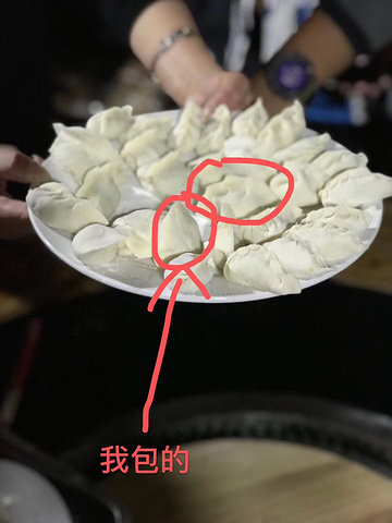 晚上一起在客栈餐厅一起包了猪肉酸菜饺子,广东人包的饺子像沙县小吃的蒸饺,而我包的就很北方了~😁