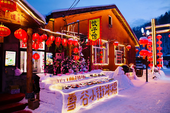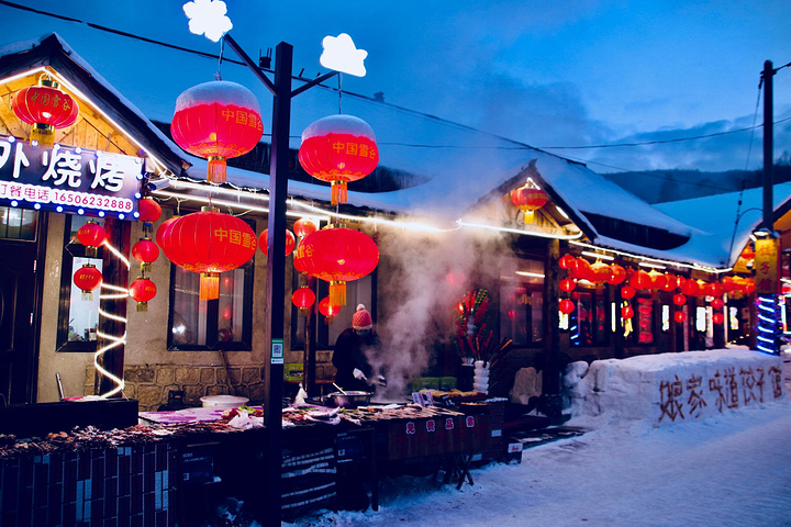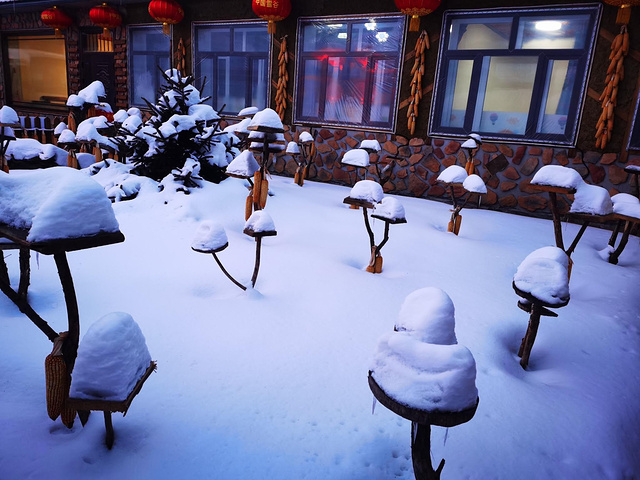 哈尔滨到雪谷的车程大概在5个小时左右,雪谷景区不大只有一条街可以转转,到了雪谷回酒店放下行李稍作休息就出去溜达。