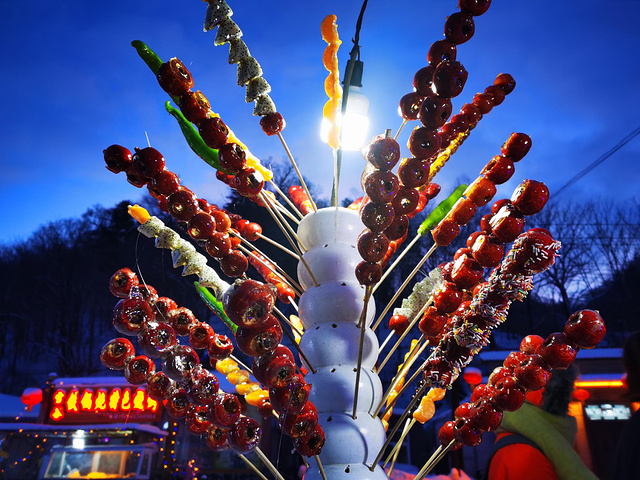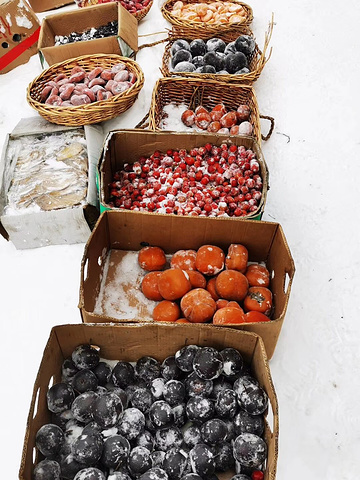 这里物价比雪乡低一点,可以在这里品尝冻梨、冻桃还有万物皆可冰糖的各种。