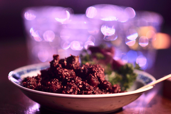 冷吃牛肉是甜辣的,很和我的口味,贪心地多吃了两块,居然被辣到