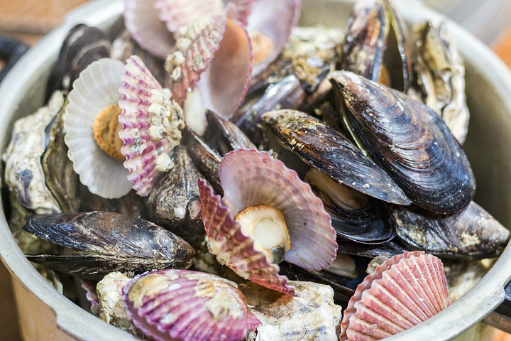 自助餐厅的好处就是各种吃的都有,肥美大虾、掌中宝、牛排等等皆有,再提上一大锅汽锅蒸扇贝过来伴着料碟吃,完美~
