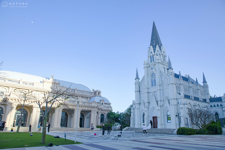 教堂的正门永远都被一个又一个婚纱团队占领着,在 三亚 应该没有比吉庆广场更异域风情好的婚纱拍摄地,圣洁而纯白的教堂,在蓝天的映衬下,显得是那么的浪漫。