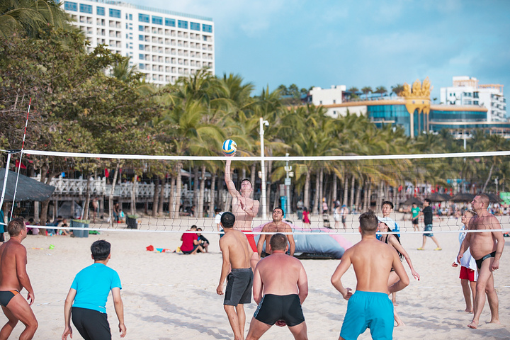 阳光明媚的海滩,不多的沙滩排球场成为游人的最爱,表面上看着确实比室内排球更加吸引眼球,但是事实情况却是在沙滩上真的行动很困难,不像在平地上可以来去自如,不规则的沙滩让移动更加的缓慢,不过在 大东海 除了下海感受大自然,沙滩排球也成为了为数不多的娱乐项目。