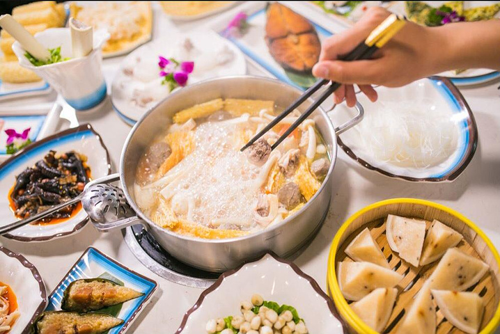 海南除了四大名菜之外,椰子鸡也是近年来颇受游客喜爱的海南特色美食之一,尤其最受女性游客的喜爱。椰子鸡,顾名思义,是用椰子、鸡制作的一道家乡菜,属于海南菜。口味咸鲜,椰味芬芳,汤清爽口,有益气生津的效果,椰子鸡火锅加上海南特色美食、三亚当地美食等菜式,形成了“海南火锅+海南地方菜”的独特美食体验,成为三亚湾周边必打卡餐厅。