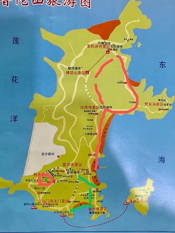 我在网上提前订的岛上的民宿“普陀山桃源居”房间很干净。因为到了已经中午十二点了,所以我的游玩时间是一个下午和一个上午。计划第二天中午离岛。老板给了张地图,给了建议。很实用。