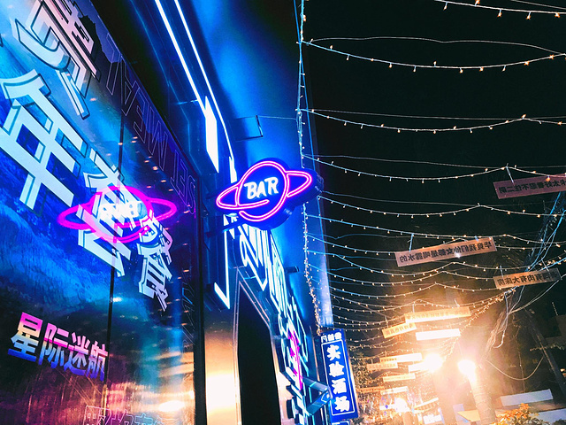 回到民宿,放下东西,感觉还有点兴奋,想再出去喝点。来的时候就知道这里也有一条小吃街,还没来得及逛逛,这一出去才是真正打开了新世界的大门,原来我们住的地方这么大,这么热闹呢。