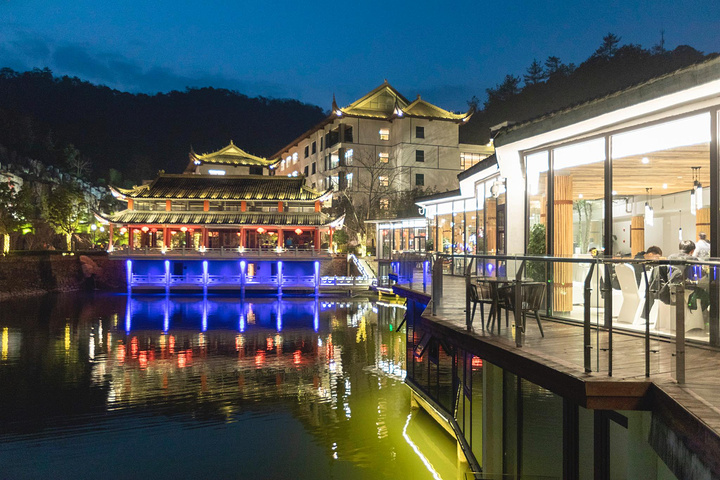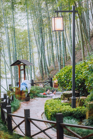 晚上在青翠的竹林里,泡一个温泉,在水汽氤氲间,卸去一身的疲乏。