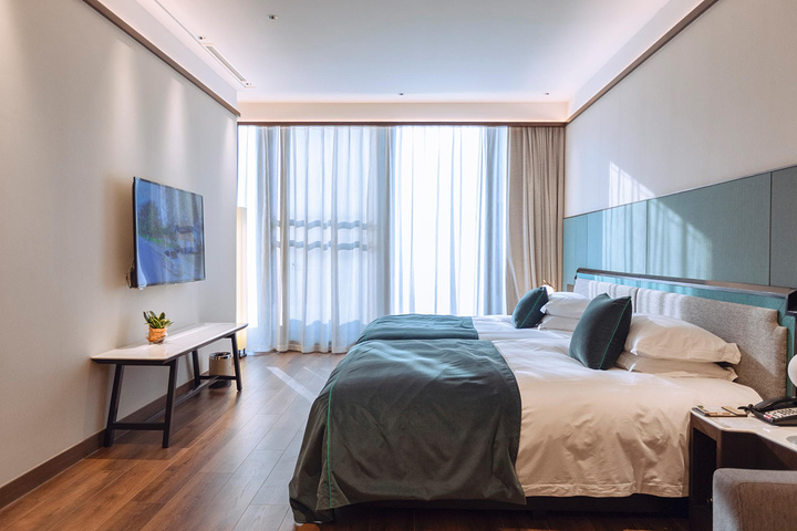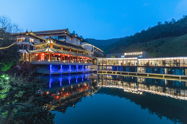 安吉涵田度假村坐拥九龙山,景致怡人,采茶季茶香四溢,拥有112间客房,分为山顶龙倚楼、悬崖崖居、多种房型可供选择,我们晚上入住在山顶的倚楼里,留宿于青山绿水之中,看半山烟雨,感受云淡风轻。