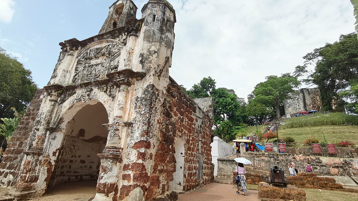 圣地亚哥城堡,是葡萄牙人建的一座城堡,是马六甲的象征。1511年,葡萄牙人占领马六甲以后,为了防止马六甲王朝的残余势力反攻,在圣保罗山下建成这座城堡,以保护自己的臣民和香料贸易。1641年,荷兰人占领马六甲的围城战争中,曾经重创这座城堡,荷兰人占领马六甲后,将它重新修建,并将荷兰东印度公司的名字简写"VOC"刻在城门上。后来,拿破仑战争爆发,法国攻击英国的同盟国荷兰,荷兰将海外殖民地交给英国管理。1808年,英国士兵乘机拆毁圣地雅哥城堡,由于斯坦福·莱佛士爵士(开埠新加坡的功臣)的干涉,英国人放弃了摧毁它的计划。由于干涉太晚,只剩下现在的圣地雅哥古城门。2003年,剩余的城墙墙基被发现,并列为古迹进行保护。