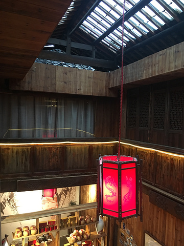 小雨还在继续,晚上店里掌上了一盏灯,店主人在下面喝茶聊天,很有烟火气的生活