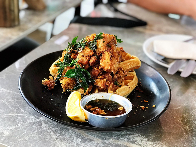 推荐餐品:炸鸡华夫饼、 布朗 尼蛋糕、野莓莫吉托