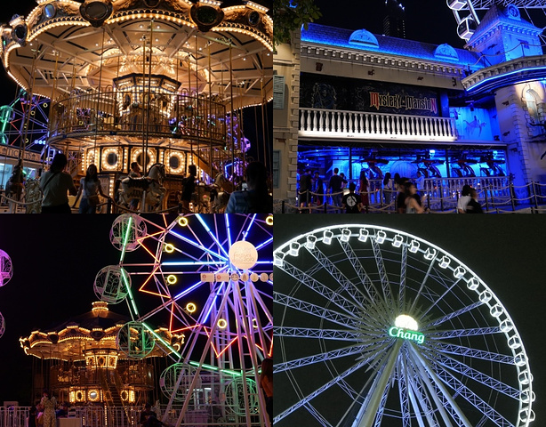 摩天轮夜市是一个非常大型的户外购物中心,集市里面有各式各样的纪念品,还有一个小型游乐园哦。 这个主题公园内有双层旋转木马,鬼屋,碰碰车,狂欢节活动等等, 但是来到这就必须要玩的那就是这里的标志,摩天轮啦,可以看到180度俯瞰整个曼谷的景色哦!