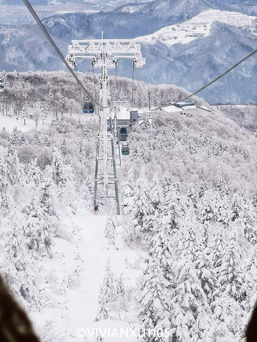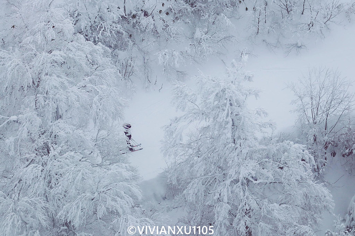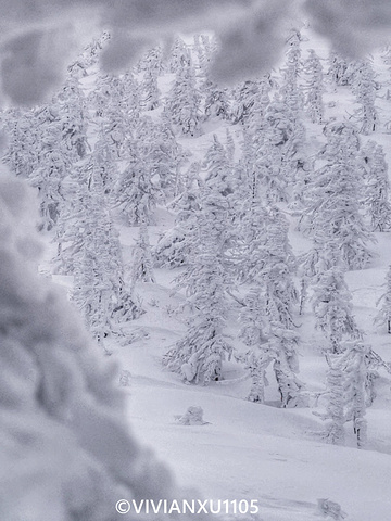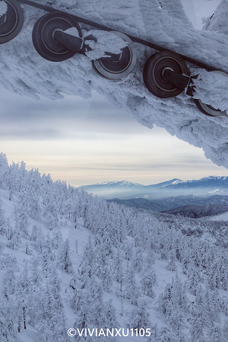 乘坐缆车一路向上,看滑雪游客从山顶穿过“树冰”丛林,看针叶林树海越来越白。。。