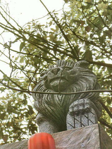 部队家属院有多个门牌号,门墙上的狮子显得威武