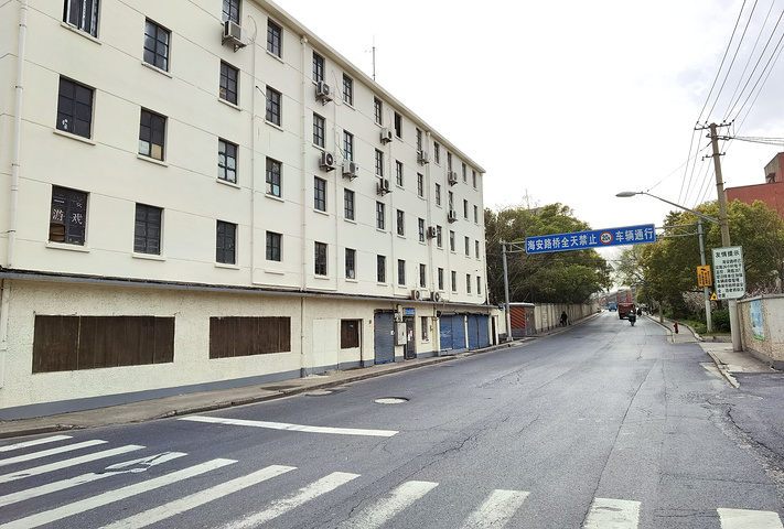 复兴岛位于上海市区的东北角,是一个用淤泥土堆积而成的人工岛;过了定海桥就是复兴岛,岛上只有一条贯穿整个岛的马路~共青路,一个渡口~定海桥摆渡,一个地铁口~12号线;一个大型船厂~中华船厂;一个公园~复兴岛公园;二个公交终点站~60路与577路;二个部队营地驻扎,其余都是仓库,居民区很少;走在共青路上,平时人流就稀少的复兴岛因疫情而显得更加静谧;