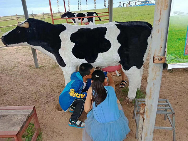 早餐后参观了民俗园,园内很丰富,喂小羊羔,挤牛奶,在蒙语小课堂学习了蒙语,园内免费提供蒙古服装,让我体验穿在身上的民族文化,草原踢足球,放风筝。感受草原的蓝天、青草。让我忘记了城市的烦恼。150园体验30多种活动,真的是超级值得,特别适合小朋友玩。