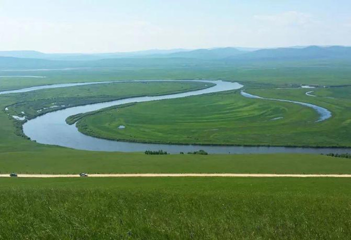 然后是天下第一曲水——莫日格勒河,乐行户外旅游公司的司机师傅非常熟悉这里的地形和风景,开车带我们来到一个能俯瞰莫日格勒河的山坡,河水和草原形成了眼前的美景。