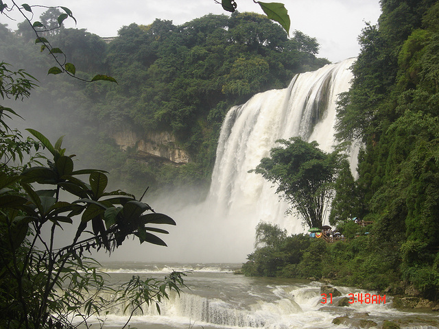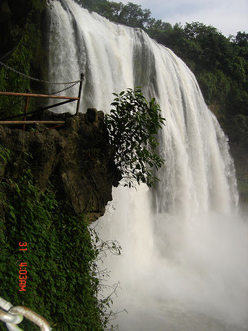 离大瀑布越来越近,声音也越来越大,好像有千军万马向我们飞奔过来。随着湿润的空气变成雾化的水珠,大瀑布也慢慢地展露出了它的全部雄姿。由于水雾的浓重,脚下的路也十分湿滑,在瀑布震耳欲聋的咆哮声和水雾的包围中顺着人流慢慢前行。由天而降大瀑布近在咫尺,什么是震撼?什么叫激情?什么是飞流直下?什么是声若巨雷?大瀑布用它宏伟雄姿和狂奔之势帮我做出了回答。