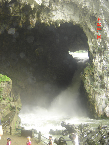 从黄果树大瀑布景区入口到瀑布脚下选择坐扶梯,然后沿着山腰上的观光小路,顺时针走到大瀑布下,穿过瀑布下的水帘洞,再顺时针走回到大扶梯脚下。虽然游客很多,但是就一条小路,且都是顺行,所以秩序还是不错的。唯一的不足是你稍一驻足,后面的人们就会催促。