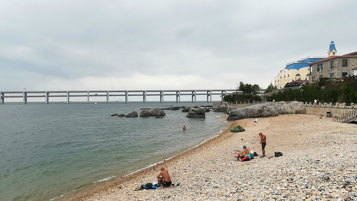 可能今天天气不是很好,灰灰的?岸边看到跨海大桥,大连大桥么?