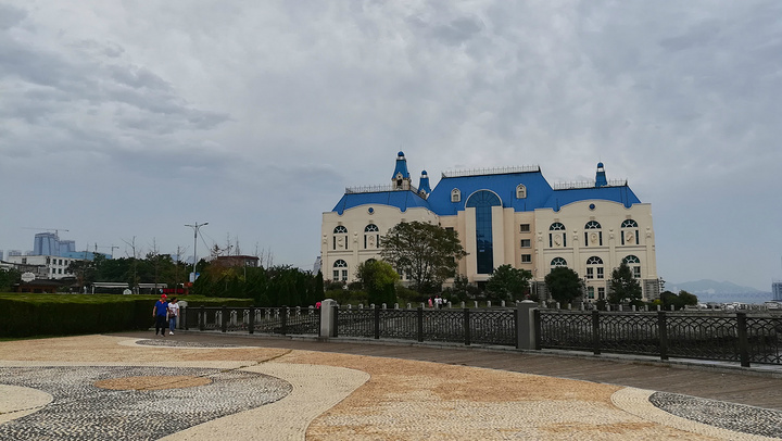 出了博物馆,沿着海岸线一直走看看海边,海风吹来凉爽惬意,果然上山后面,有个小道可以下去星海公园的,因为之前有些攻略说不通,所以很担心不通又要走回头路了,这边公园也是岸边走走,可以下去沙滩,再往前走就是老虎滩海洋公园,小朋友很多,我们就没进去要买套票的
