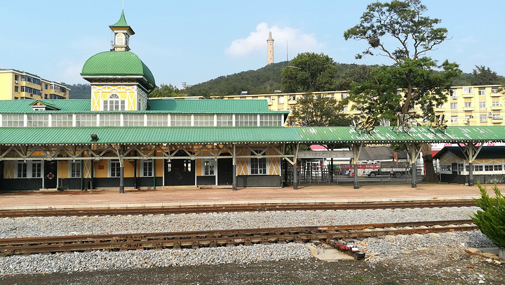 军港公园免费可以逛逛游人,旅行团必来打卡点,再往前步行没多远,就经过了军港,门牌都没有的,有解放军守着不让拍照,再过去马路对面就是旅顺火车站了,现在已经停止通车,但还在卖票发挥余热,看看当年俄国建筑旧影,美着呢:中国最美的火车站之一2014年旅顺站正式退出了运营,无需门票俄罗斯风格木质建筑,站内有国内保存最完整的欧式站台