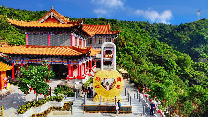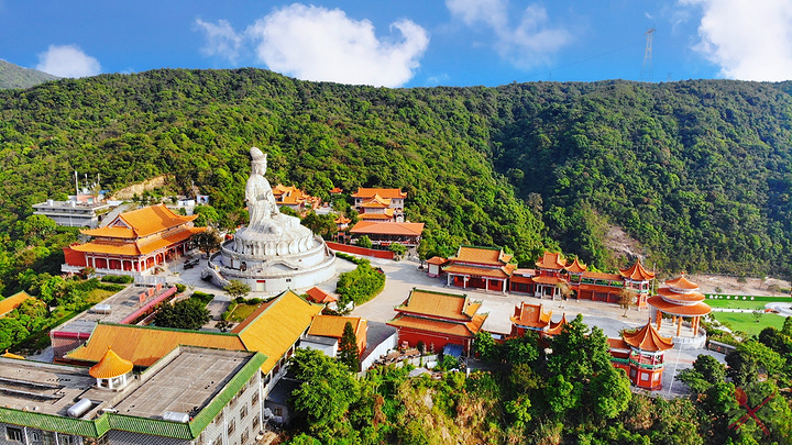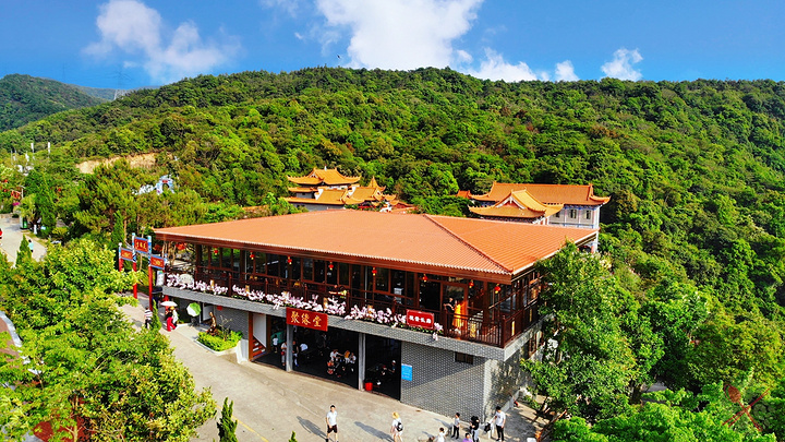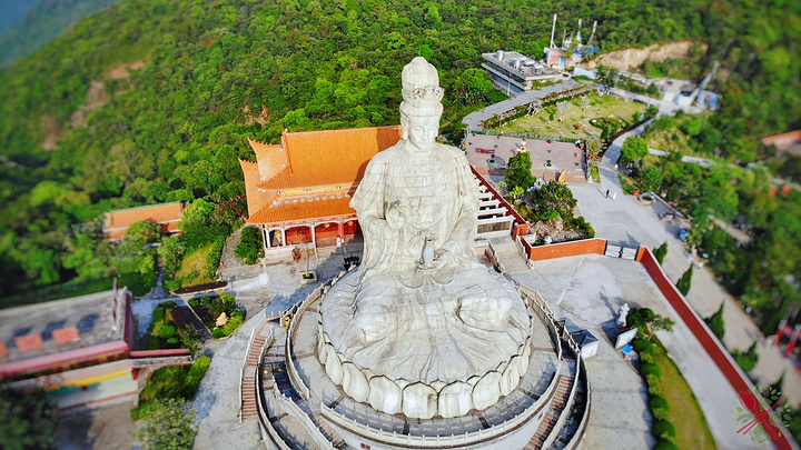 还没到山顶,就看到巨大的观音圣像,这座世界最大花岗岩观世音菩萨圣像,高33米重达3千多吨,很多游客慕名而来求佛许愿,皆能愿望成真。