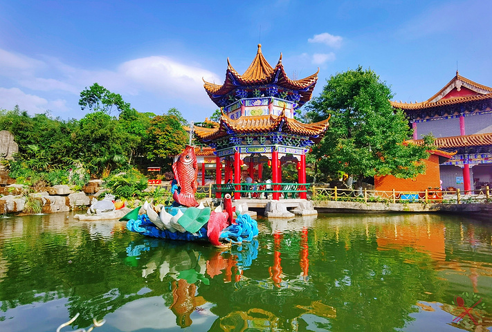 看完观音像后,可以凭栏远眺吉祥苑,将同心锁、鹊桥、玉露瓶和紫云阁等美景尽收眼底。
