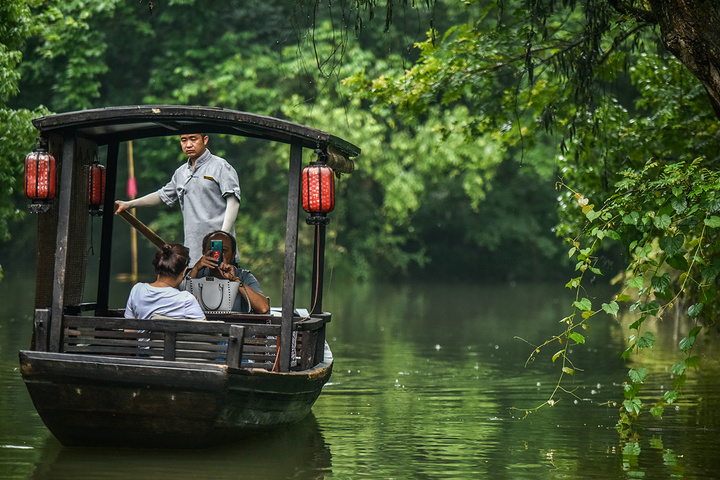 梅雨时节的江南虽然经常下雨,但是却有着言烟雨江南的诗意风光。尤其是选择一个带有下午茶的橹船上畅游西溪湿地,这种感觉非常好。会觉得自己已经被这种秘境般的环境所诗化了!