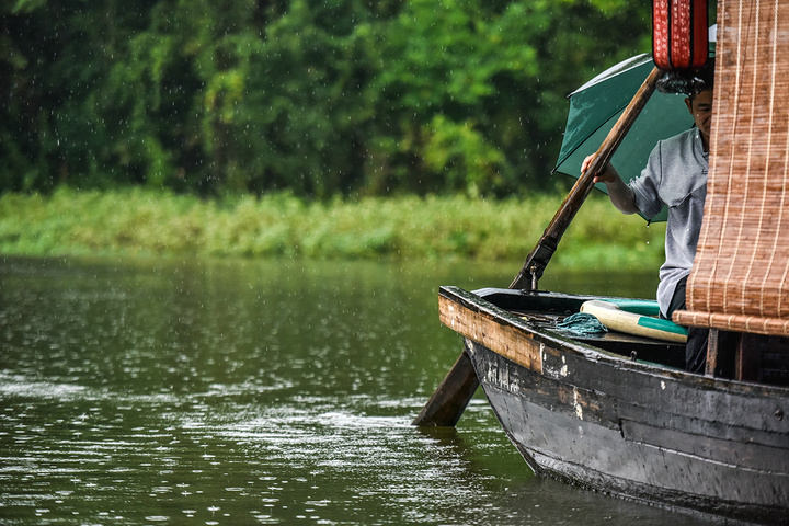 雨水大小变化很神奇,一会儿如倾盆大雨一会儿如毛毛细雨。果然是梅雨时节里的江南,雨水变化不定。橹船行驶到每个地方都能彰显出属于烟雨江南的韵味。